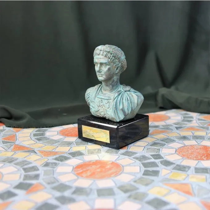Denne buste er en kopi af en buste af kejser Tiberius. Den oprindelige er en del af samlingen af det arkæologiske museum i Napoli. Disse statuer blev ofte malet for at gøre dem synes livagtige.