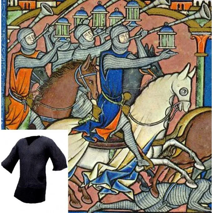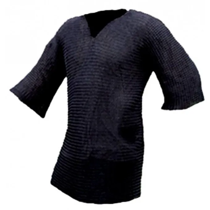 Denne brynjefrakke er fremstillet af 1,6 mm tyk bronzed gathered Runde Ringe med en indvendig diameter på 8 mm. Ringene er håndvævede fire i én. Den brynjefrakke har mid-lange ærmer og når lige over hoften.
