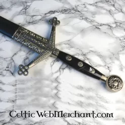 Længden af denne rigt dekoreret claymore er 110 cm, og længden af bladet er 83 cm. Den leveres inklusive skede