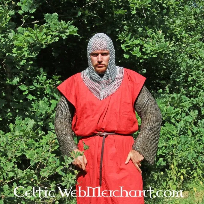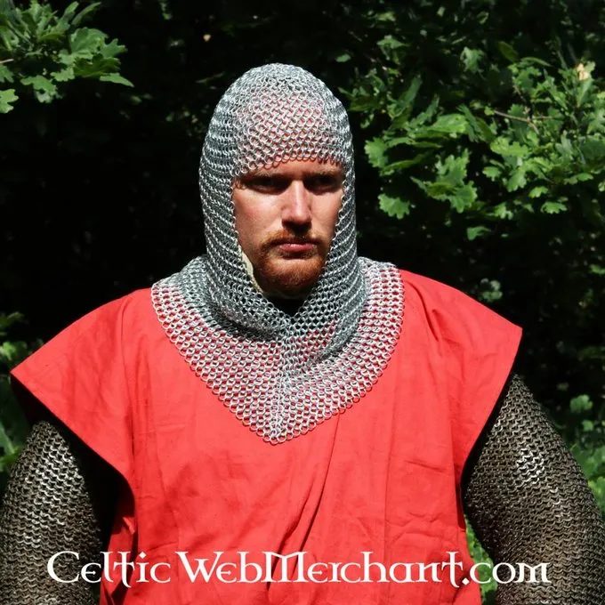 Denne coif er fremstillet af 1,6 mm tyk galvaniseret gathered Runde ringe med en indre diameter på 9 mm. De er vævet fire i én. Den coif har en trekantet udskæring.