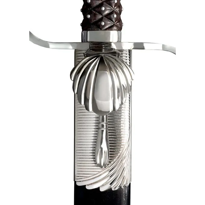 Den jagt sværd er et våben med en klinge på op til 65 cm, der blev meget populær i Europa og USA i løbet af det 16. og 17. århundrede. Det var et fashion statement, men også effektiv, praktisk og den rigtige størrelse til at tage med overalt. Denne kopi af Cold Steel har en højt poleret klinge og flere hulslibninger. Den smukke håndtag er lavet af malaysiske træ og er dekoreret med nikkel ben. Hylsteret og afbøjningsplade har en elegant skalformede design. Skeden er lavet af høj kvalitet sort læder.
