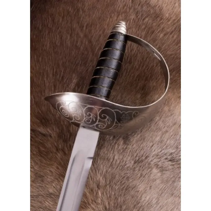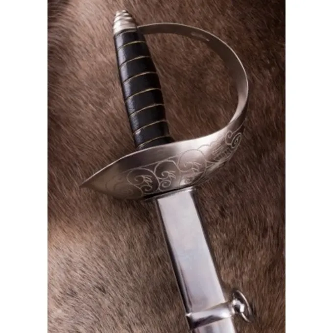 Den 1912 kavaleri sabel var den allersidste sværd udstedt til British Army kavaleri officerer – på et tidspunkt hvor hest angreb var stort set forældet og sværd blev sjældent brugt som en kamp våben. Det blev betragtet som den bedste kavaleri sværd nogensinde designet og var stadig i brug under Første Verdenskrig. Den 1912-modellen var tydeligt baseret på 1908-modellen, men var meget mere kunstfærdigt dekorerede. Da den blev indført, blev det til rådighed for alle officerer til at erstatte de inkonsistente sværd de tidligere havde erhvervet privat. Sammenlignet med standard sværd, blev grebet mere sindrigt designet: mens standard 1908 version af den simple soldater var udstyret med et greb lavet af gummi eller bakelit, i officer versionen disse materialer blev erstattet af haj læder med nikkel sølvtråd indlæg. Desuden blev den kurv dekoreret i stil med det 19. århundrede officer sværd med en ætset blomster gravering (kaprifolium motiv). Den 1912-modellen er stadig bruges som en ceremoniel sværd af den britiske, australske og canadiske kavalerienheder. Denne smukke, billige replika fra Deepeeka har et lige, enægget klinge af fjederstål DA45, som har en fyldigere over ca. to tredjedele af sin længde. Grebet med en træ kerne er pakket ind i sort læder og tråd snoet stål. En smuk sabler for samlere og 20. århundrede reenactment.