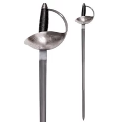 Materiale: fjederstål DA45, træ, læder, messing / Kant: 1 mm / Længde: 109 cm / Blade længde: 89 cm / Fæstet: 20 cm / Maks. bladbredde: 3 cm / Balancepunkt: 17 cm under fæstet / Levering herunder skede / Vægt uden skede: ca.. 0,98 kg / Vægt med skede: ca.