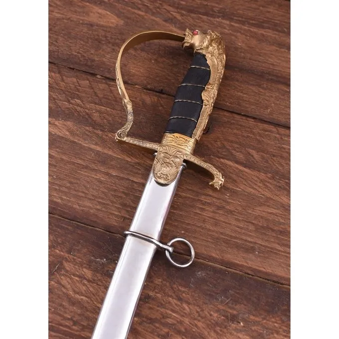 Sabre med løvehoveddekorationer blev for det meste brugt af preussiske og tyske officerer under første og anden verdenskrig. Der var mange variationer af denne sabel. Denne sabel er ikke en nøjagtig kopi af en historisk original, men er baseret på forskellige elementer af originale ceremonielle sabre, som tyske officerer brugte under 2. verdenskrig.