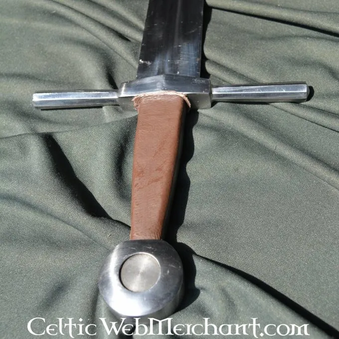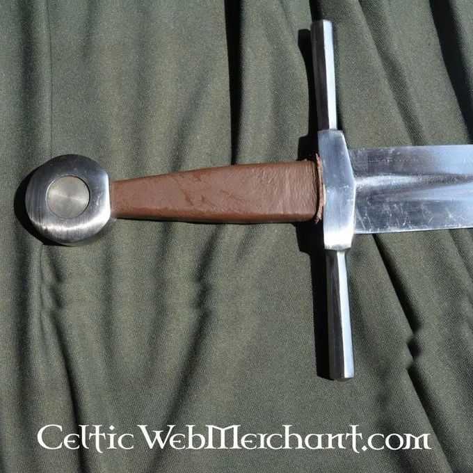kulstofstål klinge af denne sværd er smedet ind i greb og fastgjort til Knap. Der er en blodrille over største del af bladet for fleksibilitet og balance. Disken Knap og på tværs af vagten er lavet af stål.