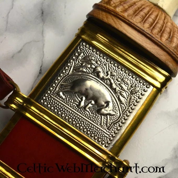 Denne gladius er en kopi af en original udgravet i Fulham, England. Denne luksuriøse gladius er lavet i Mainz stil og har en dekoreret greb af ben og træ. Den skeder er lavet af træ beklædt med læder og dekoreret med (forsølvet) messing montering. Denne gladius har en halvskarpt blad af DA45 fjederstål.