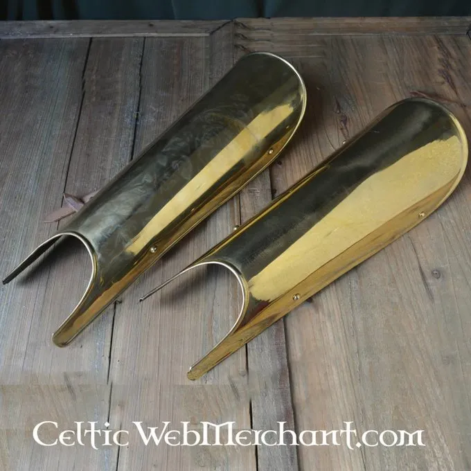 Dette par messing fedtegrever er lavet efter flere udgravninger af klassiske græske rustning plade. Grever som disse blev primært slidt i oldtiden, fx ved hopliter og Triarii.