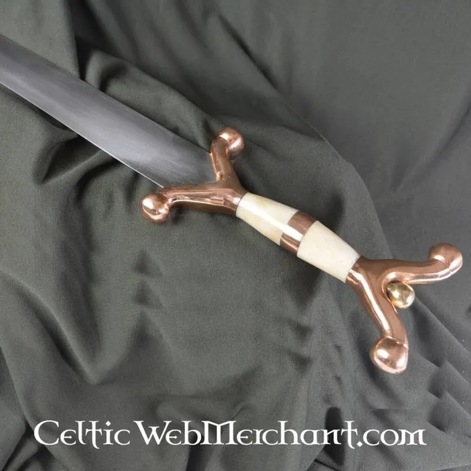 Dette sværd har en stål klinge, er grebet af ben og bronze. Grebet er lavet i en stiliseret menneskelignende figur. Sværdet har en længde på ca.. 66 cm og vejer 1 kg