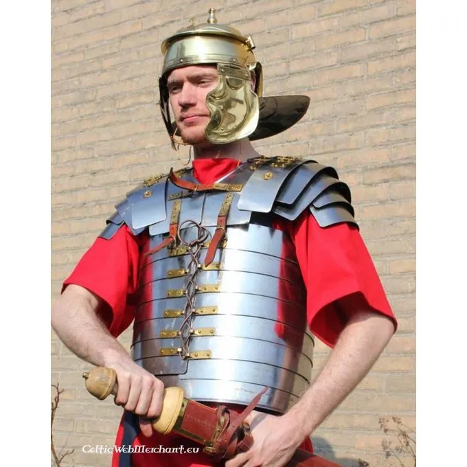 lorica segmentata blev båret fra det 1. århundrede e.Kr. af romerske legionærer. Denne type panserplade bestod af jern strimler, der var knyttet til indersiden på en læder rem. Denne rekonstruktion er baseret på en af de tre typer af loricae segmentatae, der blev fundet i Corbridge, Nordengland. Modeller som denne blev sandsynligvis brugt mellem 40 og 140 e.Kr..