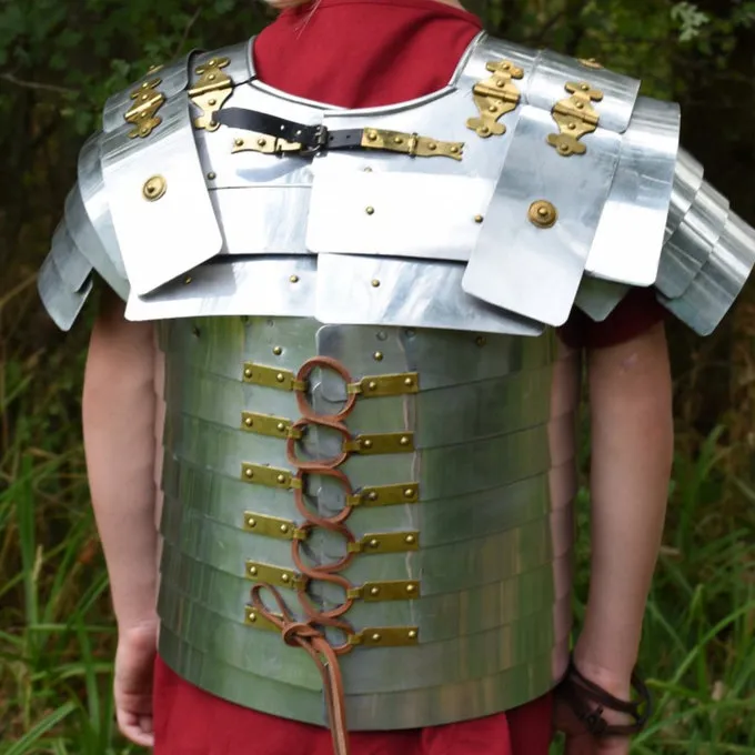 Denne rustning for børn er baseret på den Corbridge typen lorica segmentata fra det 1. århundrede e.Kr.. Denne type af rustning er opkaldt efter byen Corbridge i det nordlige England, hvor der er fundet rester af Loricae segmentatae. Dette område er, hvor den gamle Corstopitum fortet stod, en vigtig base for den romerske hær ved Hadrians mur. Denne rustning er lavet af aluminium, hvilket gør den let i vægt og let at bære for børn, og også vedligeholdelsesfri. I modsætning til normal stål, aluminium ikke ruster. Den lorica har messingbeslag, og læder snørebånd foran for at lukke det.