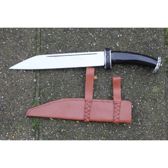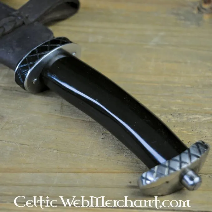 Dette er en rekonstruktion af en typisk tidlig middelalder kort sax. På tværs af vagten består af to stål diske, der er knyttet til hornet greb med to negle. Knap er også lavet af stål. Sax har en længde på 37 cm med en klinge på 23 cm og en max. bredde på 3,6 cm. Den vejer 0,5 kg og leveres med en skede.