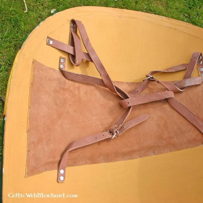 Denne kamp-klar Norman Skjold er lavet af krydsfiner og ideel til kamp. Det er 134 cm høj, max. 56 cm bred og vejer ca. 2,85 kg.
