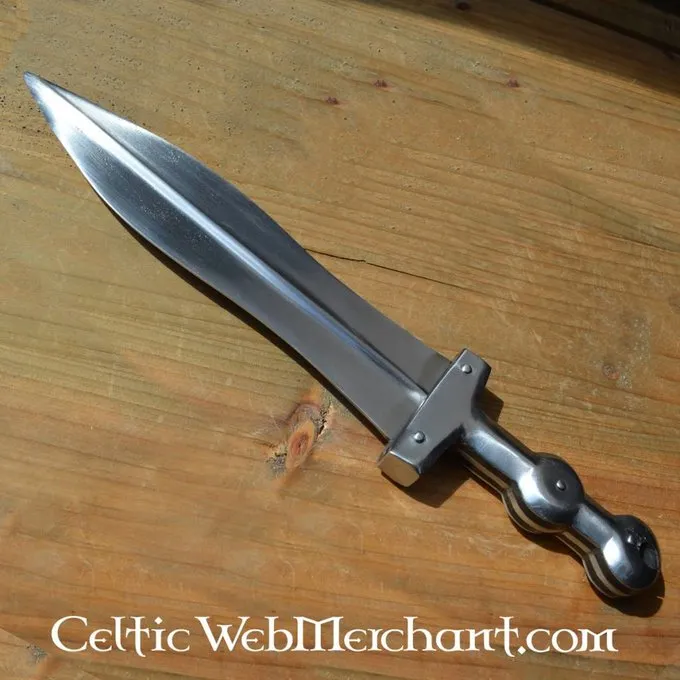 Denne pugio er 38 cm lang, med et blad på 25 cm lang. Den vejer 1 kg. det er lavet af kulstofstål, med en skede af stål og træ