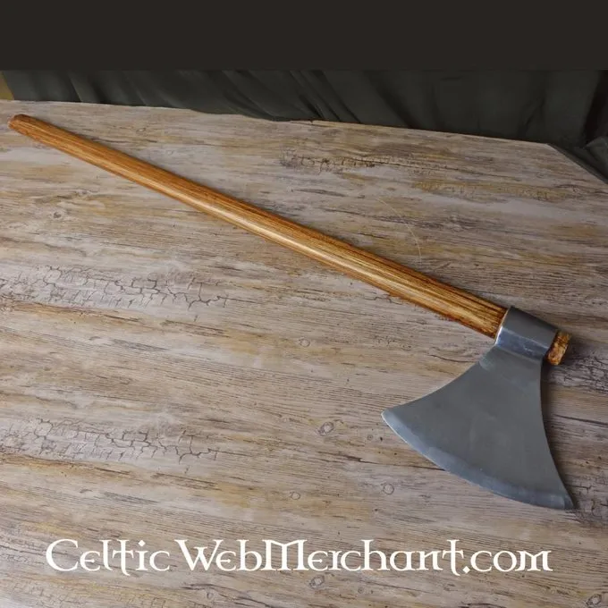 Denne kamp økse er halvskarpt, 89 cm lang, har et hoved, der er 21 cm lang og 20 cm bred og vejer 1760 gram .