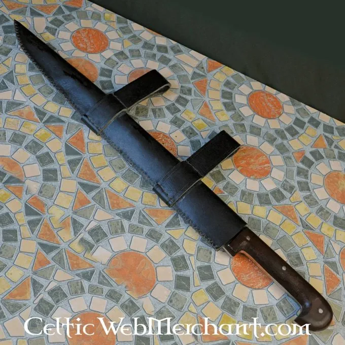 Produkt detaljer: Længde: 54,4 cm / Klingelængde: 41 cm / Grebets Længde: 13,5 cm / Vægt: 550 g / Ståltype: DA45 kulstofstål / Edge: halvskarpt / Tangkonstruktion: konstruktion with fuldt tang / Greb: horn, messing / based on da historisk original: ja /
