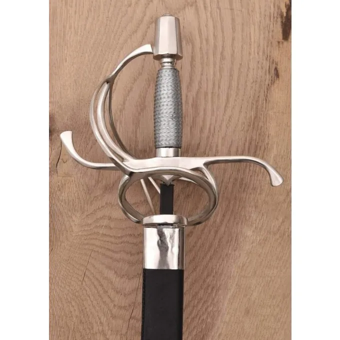 Denne rapir er lavet efter en tidlig 17. århundrede original, som er en del af samlingen af Nationalmuseet i Madrid. Rapiren beskyttet hånden, de var lettere end de traditionelle sværd og gjort knivstikkeri lettere.