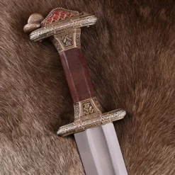Denne replika sværd er et smukt stykke til dit sværd samling. Det blev gjort efter et sværd udgravet fra et skib begravelse nær Uppsala, Sverige. På grund af den rigdom og håndværk sværdet symboliserer, det næsten helt sikkert tilhørt en høvding, ædel eller elite kriger. Den Vendel periode fandt sted mellem de store Migrations og vikingetiden. Mere af disse rigt dekorerede sværd blev fundet i Vendel periode. Denne kopi er lavet af DA45 fjederstål og har en bred fyldigere. Fæstet er lavet af messing og hele fæstet skildrer smukke dekorationer i Vendel stil. Den sværdknop består af cloisonne med rød emalje. Sværdet leveres inklusive en brun læder skede med messing dekorationer.