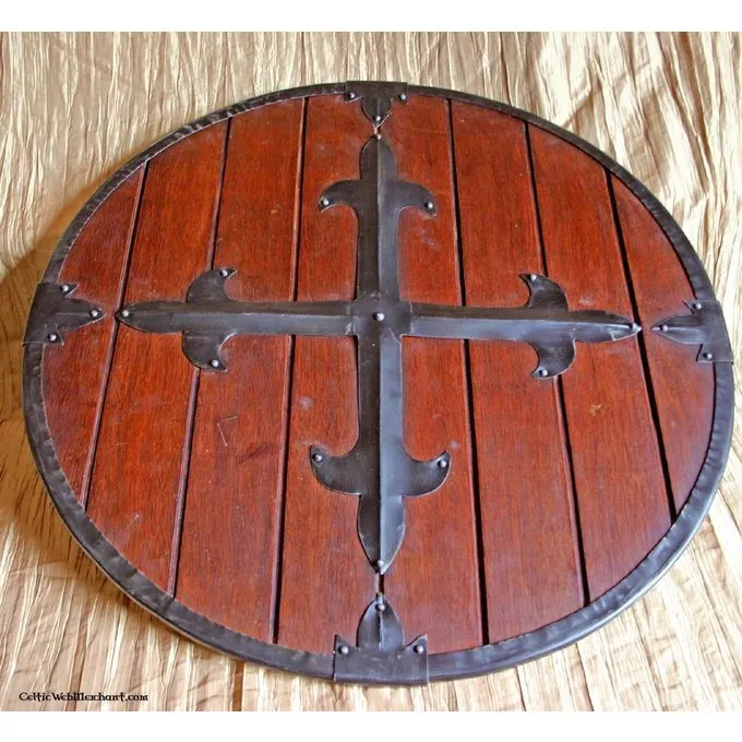 Denne Skjold består af forskellige stykker træ, ligesom originale, som er forbundet med hinanden på to sider. Skjold bliver slået med en jern kors og har en jern fælg for ekstra robusthed. Bagsiden er dækket med læder.