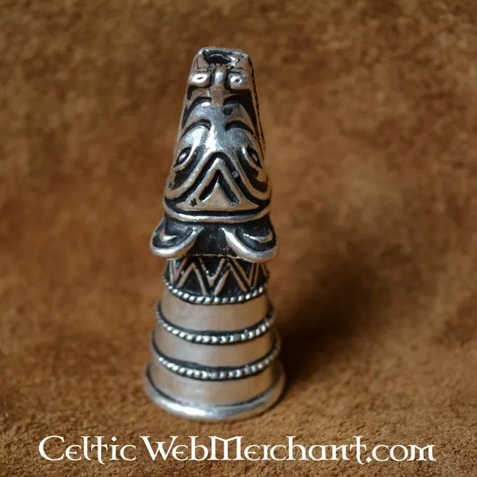 Denne drikkehorn dekoration er en kopi af et 14. århundrede original udgravet på Castle Douglas i Skotland (Dumfries, Galloway). Dette 13. århundrede drikkehorn dekoration refererer tilbage til vikingetiden og var eventuelt baseret på en endnu ældre original. Denne drikkehorn dekoration er lavet af bronze, og det er 5,7 cm lang, 2,2 cm bred og har en aksel på 4 cm. Den er velegnet til drikkehorn med en diameter på 1,9 cm på spidsen