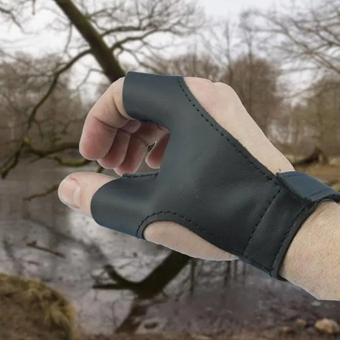 Læderhandsker som disse er blevet båret af bueskytter gennem århundreder, fra den tidlige middelalder til renæssancen. Ikke kun i Europa, men også på sletterne i Asien. Denne handske er til venstrehåndet bueskytter og skal bæres på right hånd. Han har velcrobånd så det bliver fast.