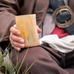 Denne ørefrie kop er poleret og belagt på indersiden og udenfor og er egnet og testet for forbrug af kolde drikkevarer. Også perfekt til middelalderlige restauranter, larp og reenactment grupper, bryllupper og meget mere. Det er også en god kop at give som en gave! Koppen passer perfekt i hånden og har et volumen på 325 ml. Hornet er ikke dekoreret, så du kan også grave det selv med et mønster efter eget valg.