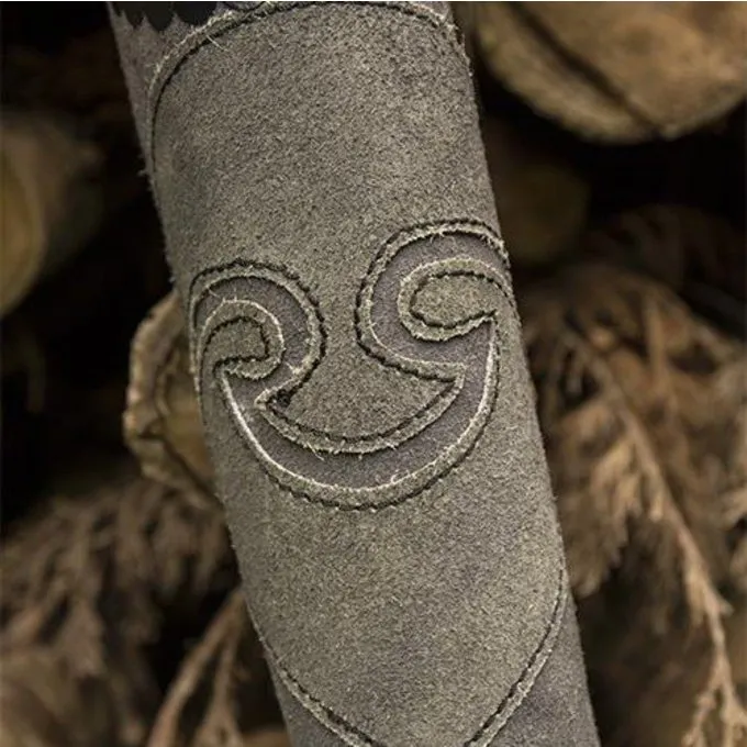Denne luksuriøse Kogger af holdbart okselæder og ruskind er perfekt til re-enactment, larp og cosplay. Den kan bæres over skulderen eller på bagsiden takket være justerbar rem. Den forreste har en smuk dekoration og Kogger har smukke hånd-bearbejdet detaljer såsom syning på bagsiden, der giver det en historisk håndgjort look.