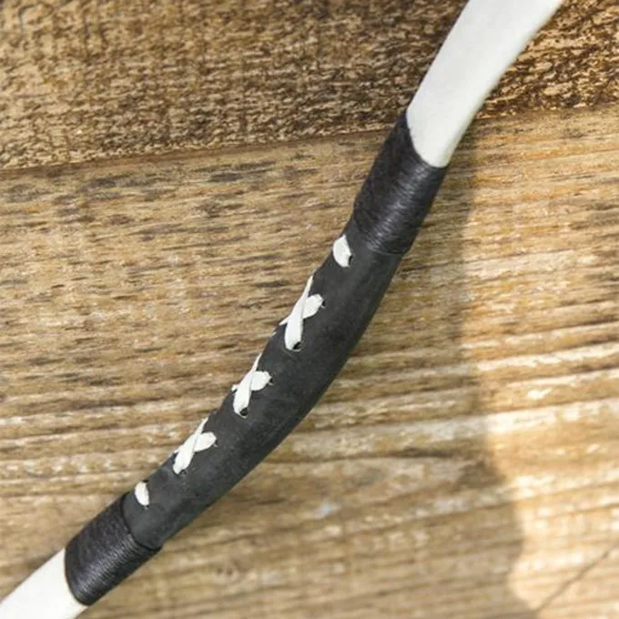 Materiale: glasfiber, velour læder, træ / / Farve: grå / / Afspændt længde: 107 cm / / Hængte længde: 94 cm / / Tegn vægt: 24-26 lbs / / Egnet til larp og nyopførelse / / Levering herunder buestreng og kappe / / Baseret på en historisk original
