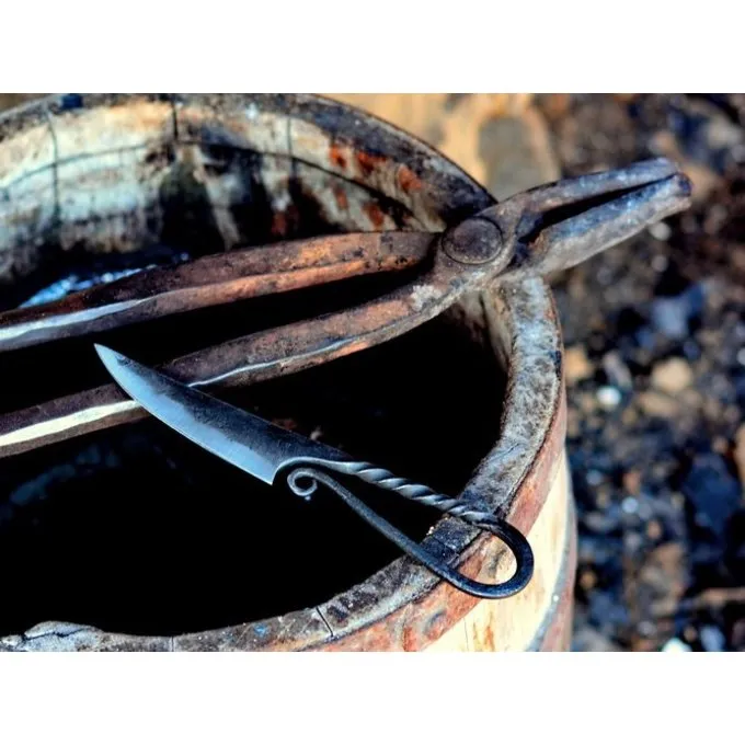Denne håndlavede lille kvinders kniv har en snoet greb stål. Knive som denne blev brugt overalt i Europa i forhistorien. Denne kniv er leveret, herunder en læder skede.