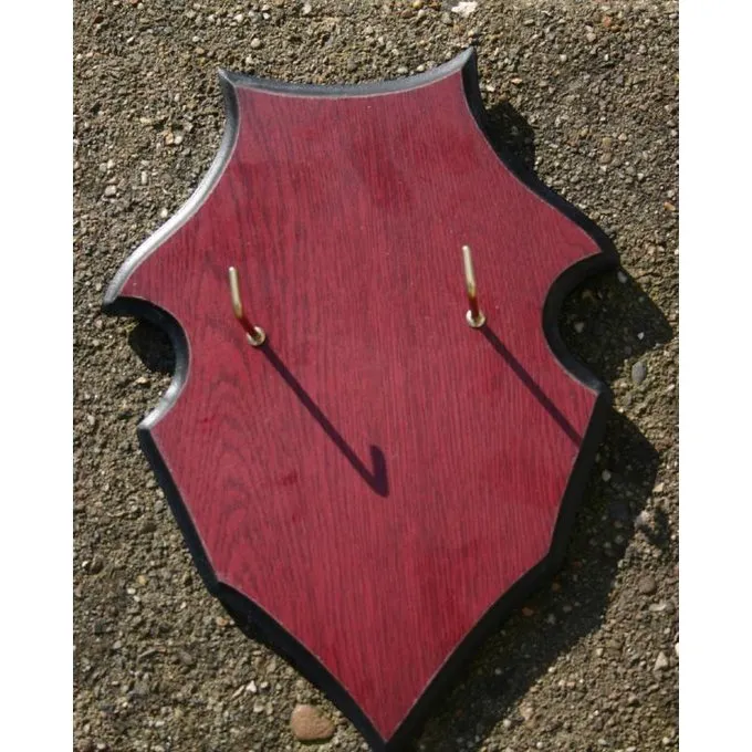 Denne træ Skjold er perfekt egnet til stuen i dit slot eller hus. Et sværd kan sættes på de to kroge på forsiden.