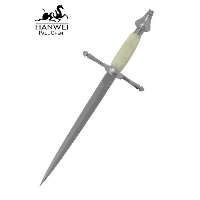 Denne vigtigste gauche har en perfekt balance. Det er halvskarpt og 43 cm lang med en klinge på 28 cm og vejer 225 g. Den leveres med en skede