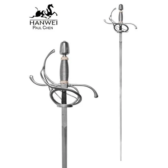 Dette stilfulde rapir er en kopi af det 17. århundrede originaler, der blev foretaget i Solingen i Tyskland. Den rapir har et fæste med fingerringe og en kno vagt. Grebet er dekoreret med tyrkiske knob.