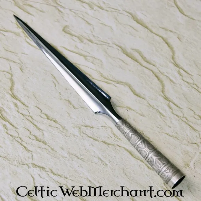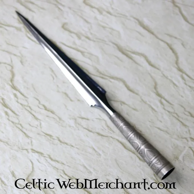 Denne kaste spydhoved er en kopi af en nordisk original. Spydhoveder som denne blev brugt hele Tidlig middelalder Europa. Denne spydhoved er lille, vikingerne brugte små og lang spydhoveder til at kaste. Den kaster spydhoved var en populær våben, men kun aristokrati havde råd dekorerede dem.