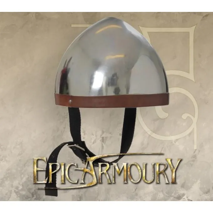 En praktisk middelalderlig grundlæggende hjelm, velegnet til bueskytter eller til lejlighedsvis brug. Hjelmen er lavet efter den velkendte Norman Hjelme with næseskinne. De var meget populære mellem den 9. og 14. århundrede, og de blev båret over hele Europa. De er afbildet på bl.a. Bayeuxtapetet.
