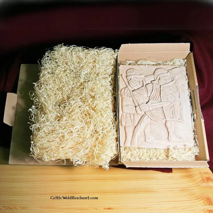 Dette relief er lavet af gips alabast og måler 26 x 20 cm. Bagsiden er forsynet med et øje til at hænge det på en væg