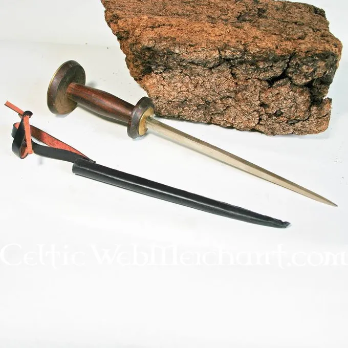 Denne rondel er en kopi af en original fra det tidlige 15. århundrede. Dens længde er 35 cm med et blad på 21,5 cm. Klingen er halvskarpt. Den rondel leveres inklusive en skede. Vejviser Produkt detaljer: