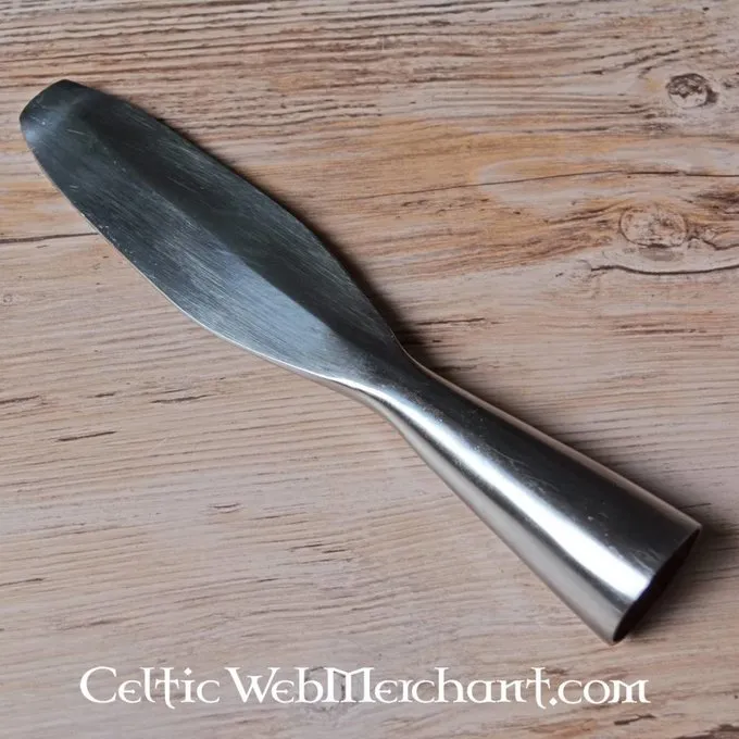 Spydhoveder ligesom dette blev primært brugt mellem 1066 og 1600 e.Kr.. Denne spydhoved har en afrundet punkt for re-enactment formål. Dens længde er 20 cm, og længden af bladet er 13,5 cm.
