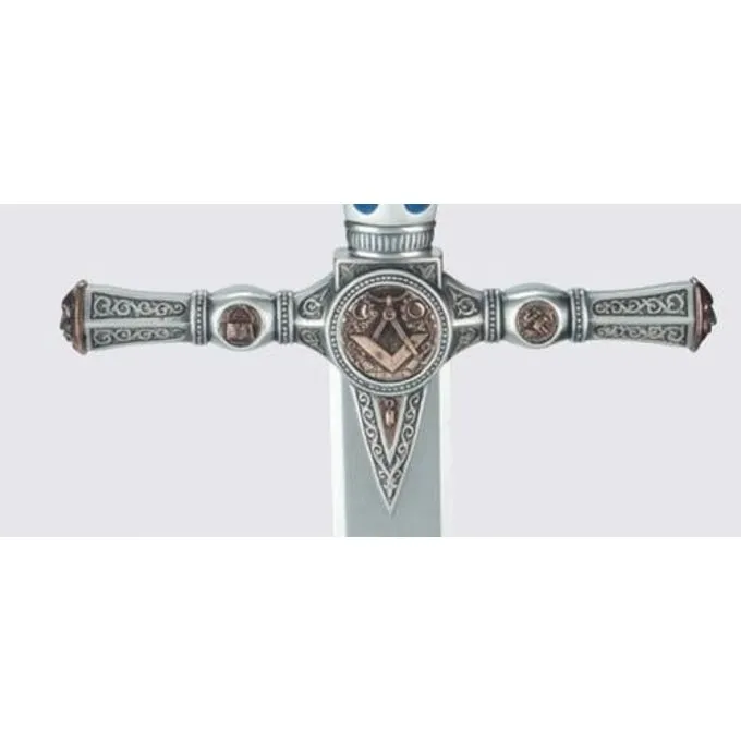 Denne tohåndssværd viser de typiske symboler i frimureriet: The Square og kompasser, den stenhuggere hammer, solen og månen og bogen af videnskaben.