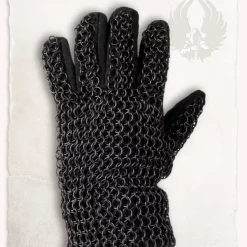 Disse Chainmail handsker har en indre handske af ruskind. Handskerne er egnet til en handske størrelse 8-9. Denne kæde mail handske er fremstillet af butted runde kæde mail ringe, som er vævet sammen i 1 i 4 konstruktion. Tip: spænd chainmail handsker med snørebånd til din Gambeson findes eller brynje. På den måde kan du tage dem ud og sætte dem på hurtigt, og du behøver ikke at sætte dem i en lomme.