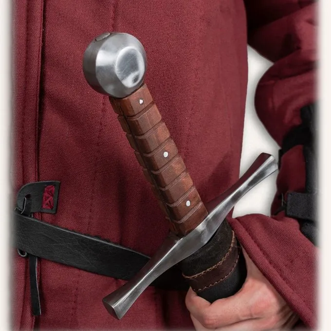 Materiale: EN45 fjederstål, læder / Hårdhed: 48-50 HRC / Pommel: nittet / Hvert sværd er testet grundigt og viser derfor regelmæssigt et spor af slag. / Længde: 110 cm / Knivlængde: 81 cm / Knivbredde: maks . 5 cm / Kant: 3 mm (stump) / Tangkonstruktion: