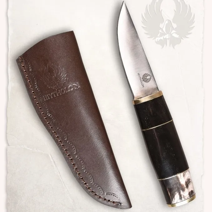 Dette Viking kniv er baseret på forskellige originaler. Knive som denne blev brugt over hele Viking verden og langt ud over. Denne faste kniv har en klinge, der løber gennem hele greb. Vingen fremstilles af kulstofstål med en hårdhed på ca.. 50 HRC. Grebet er lavet af horn og messing.