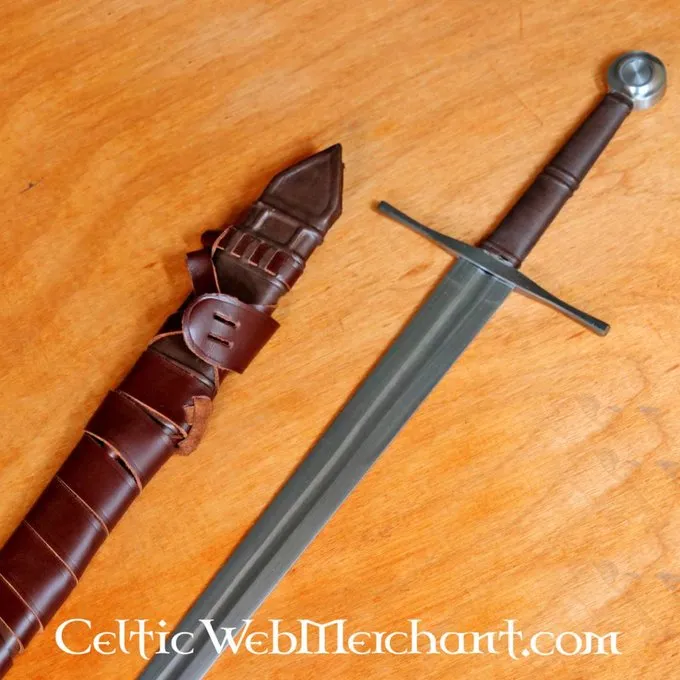 Denne en-og-en-halv-hander har en træ-skorpe indpakket med brunt læder og et brunt lædergreb. Kanten er 3 mm tyk, så sværdet er velegnet til genindførelse af slag og HEMA. Derudover er klingen hærdet og fremstillet af EN42J fjederstål. Den har en kerne med en stålhårdhed på 45 HRC og kanten har en hårdhed på 50 HRC. På grund af de to forskellige hårdheder er sværdet fleksibelt og mindre sprødt end sammenlignelige modeller. Dette sværd er en kombination af fremragende håndværk og mange års HEMA-erfaring.