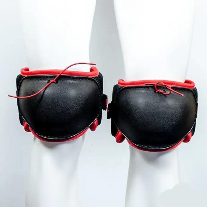 Red Dragon knæ vagter giver fremragende beskyttelse mod virkningerne på knæene. De kan kombineres med Red Dragon benskinner. På ydersiden har de en plastlag og på indersiden en skumgummi polstring, der absorberer kraften af virkninger. Knæet afskærmninger holdes på plads af en elastisk velcrobånd i knæet hulrum.