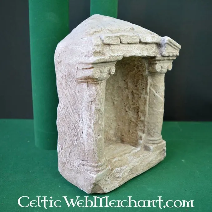 Dette hus alter er en kopi af en romersk original fundet i området Trier. Ofte lararia og deres statuer blev malet, som det ses på en original fra Pompeji. Den lararia var udstyret med offerfund statuer.