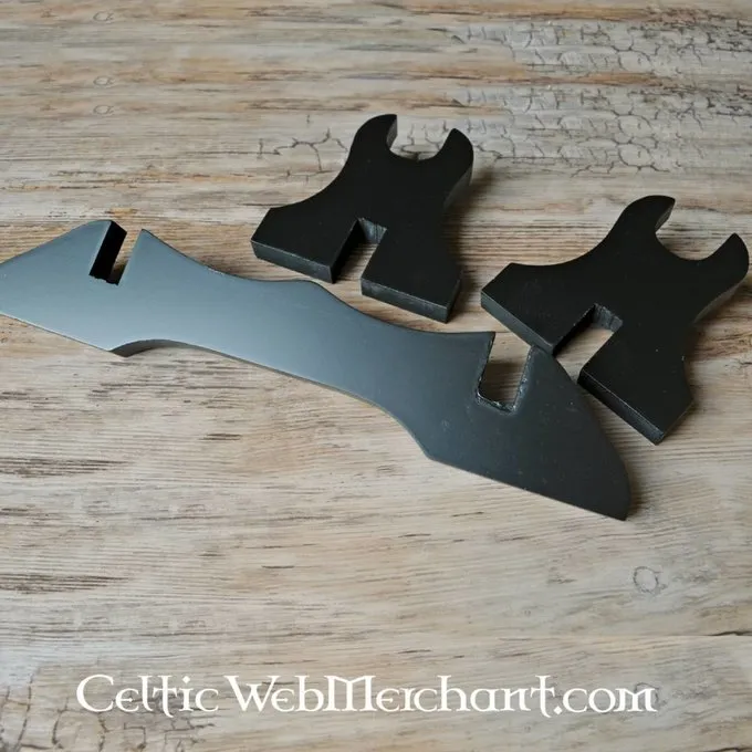 Denne træstativ er perfekt til at vise dit sværd, samurai-sværd eller dolk. Den er lavet af sort træ. Den er 30 cm bred og 11 cm lang.