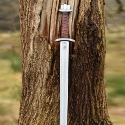 Denne hjelm with næseskinne er lavet efter en 11. århundrede originalt fundet i Østrig. I dag er det en del af samlingen af det nationale museum i Wien.