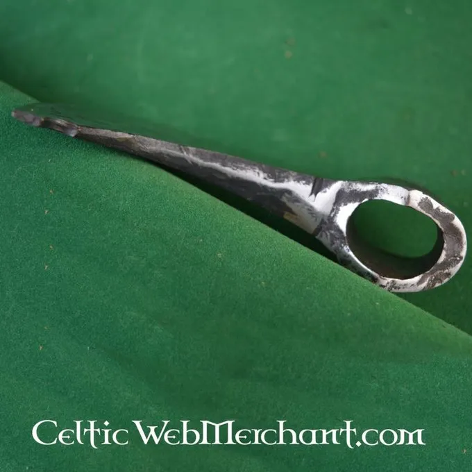 Produkt detaljer: Hovedstørrelse: 14,5 x 10,5 cm / Ringdiameter: 3,5 x 2,5 cm / Vægt: 700 g / Material: DA45 fjederstål hårdhed 53 HRC / Kant: stump 3 mm (kampklare) / skaft medfølger: nej / based on a historisk original: ja /