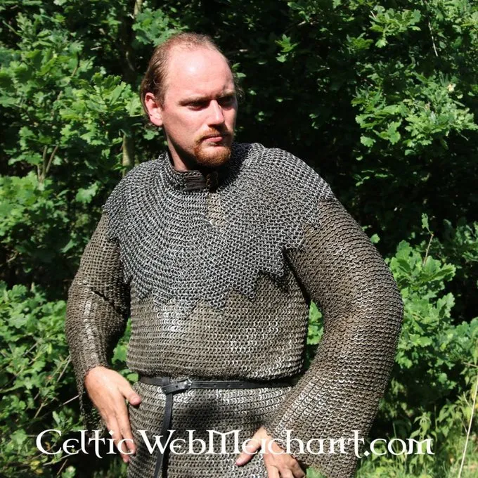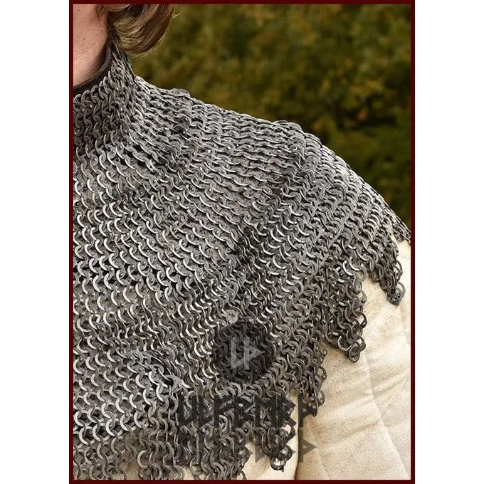 Aventails som denne blev båret over hele Europa i løbet af det 15. og 16. århundrede. I det 16. århundrede var det uhyre populær blandt den tyske Landsknecht og den skotske og irske Galloglass. Denne type brynjekrave kaldes også Biskoppens Mantle. Det har læderremme med replika ranges. Den nedre side af kraven er fremstillet af messing chainmail. Denne brynjekrave er lavet af blandet nitteed Flade ringe Runde nitter 1: 4.