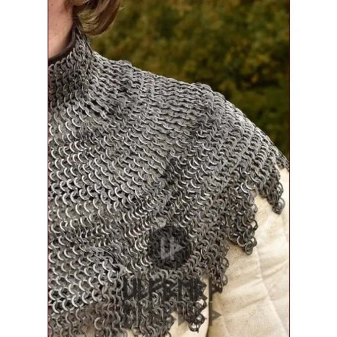 Aventails som denne blev båret over hele Europa i løbet af det 15. og 16. århundrede. I det 16. århundrede var det uhyre populær blandt den tyske Landsknecht og den skotske og irske Galloglass. Denne type brynjekrave kaldes også Biskoppens Mantle. Det har læderremme med replika ranges. Den nedre side af kraven er fremstillet af messing chainmail. Denne brynjekrave er lavet af nitteed Flade ringe, Runde nitter 1: 4.
