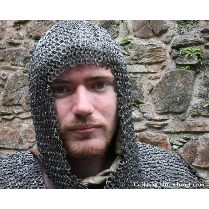 Denne coif består af Runde ringe nitteed med Runde nitter og flade udstansede ringe med en indre diameter på 6 mm. Ringene er vævet fire i én. Det vejer ca.. 3,25 kg