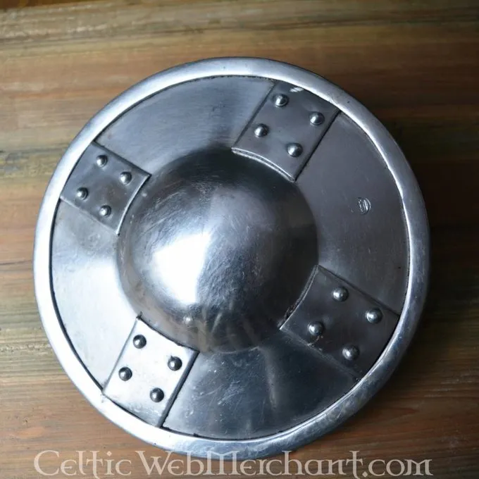 Denne runde bukkel styrkes med ekstra stålplader. Bukkel som dette blev primært brugt i renæssancen, selvom den type var meget ældre. Dette våben er perfekt kombineret med en én-hånds sværd eller en bue.